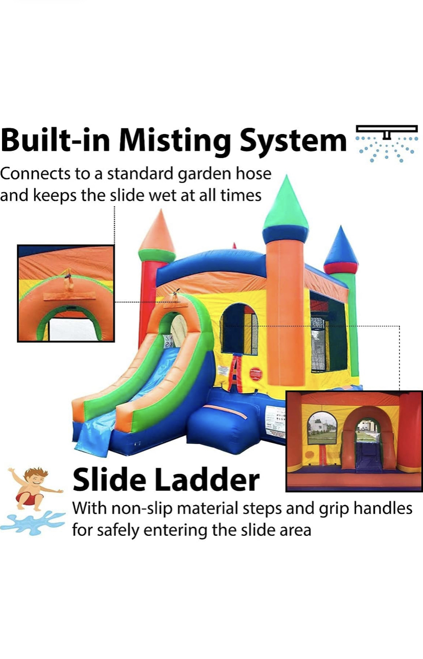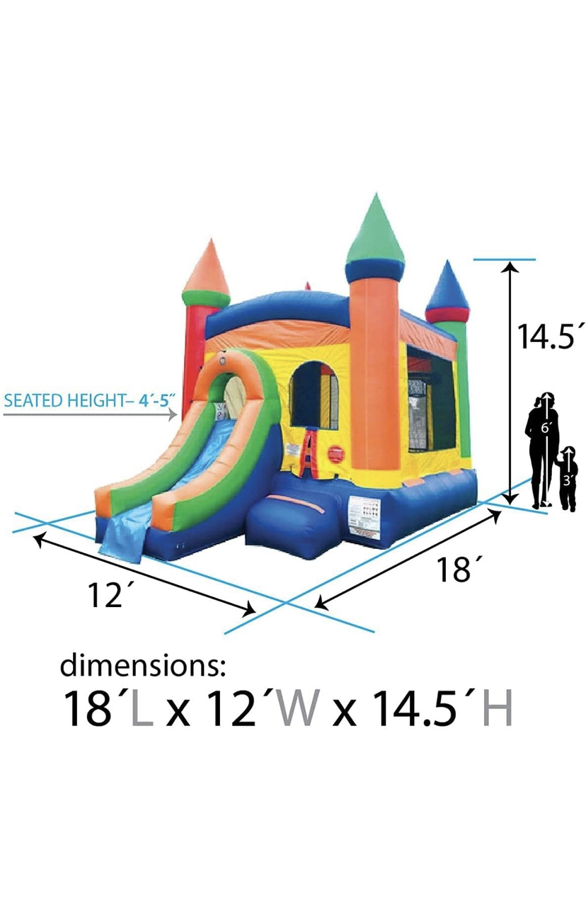Rent Inflatable Bounce House and Wet / Dry Slide | Crossover Rainbow Castle Combo | 12′ Foot x 12′ Foot Bouncy Area | Includes Blower, Anchor Stakes, and Storage Bag